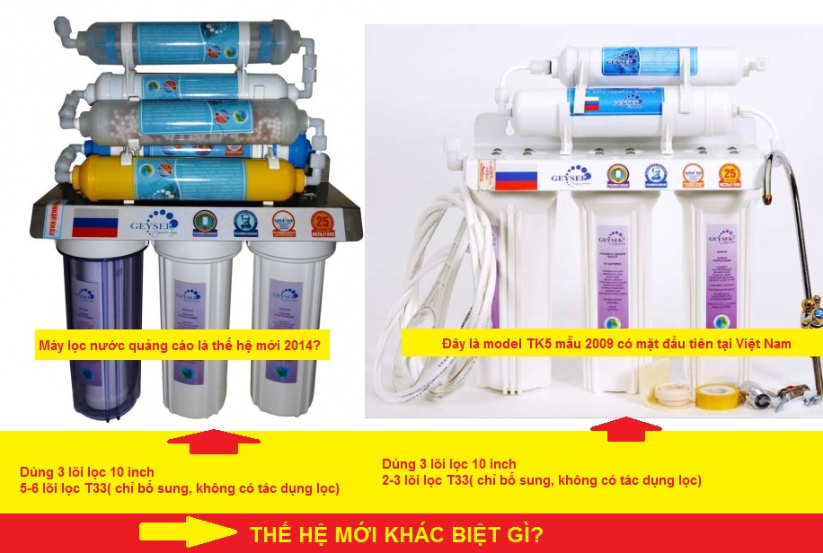 So sánh máy lọc nước Geyser TK5(model 2009) và 8,9 lõi "thế hệ mới"